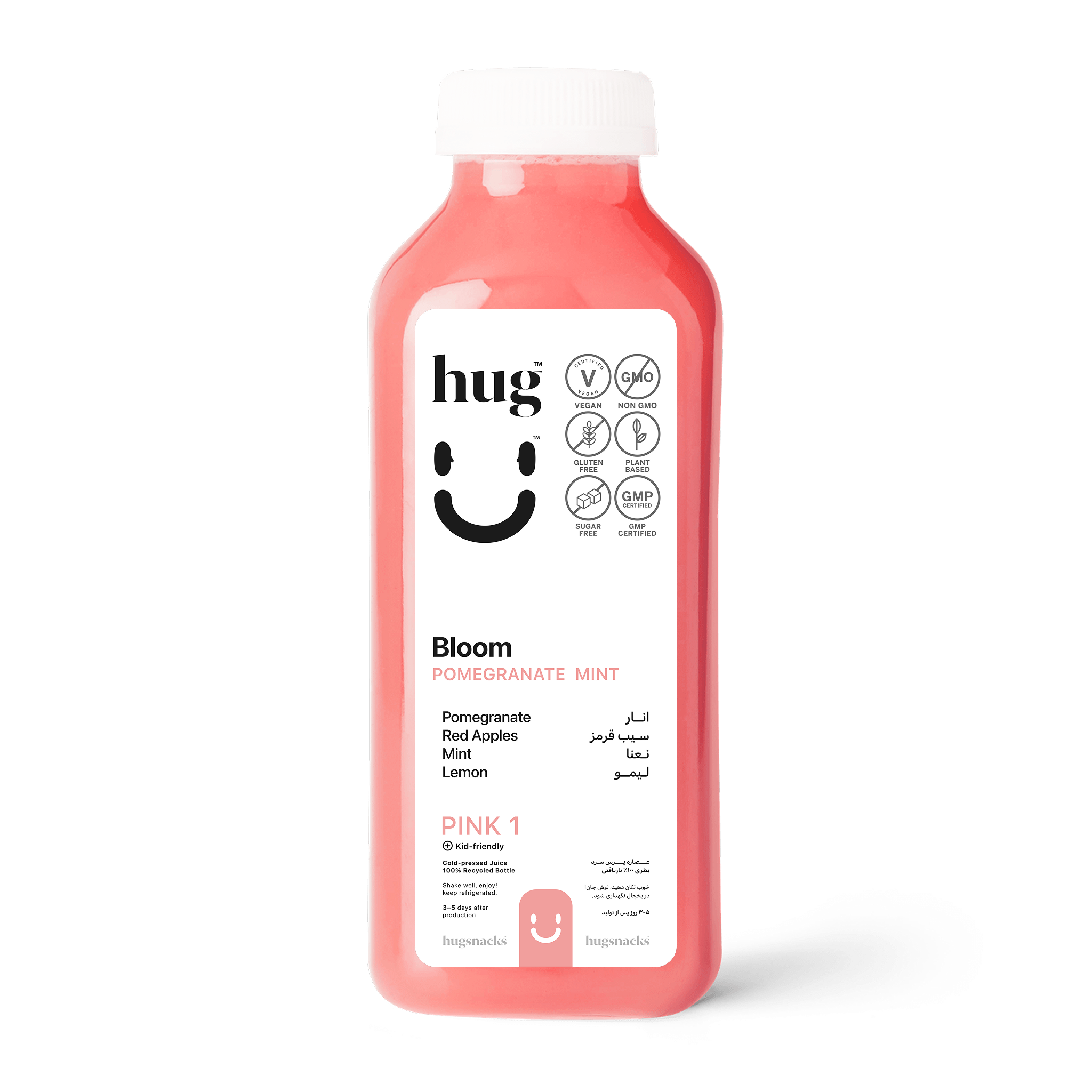 • بطری‌های عصاره پرس سرد و اسموتی ما از **۱۰۰٪ rPET** ساخته شده‌اند؛ پلاستیکی پایدارتر، قابل بازیافت و با وزنی سبک که به حفظ محیط‌زیست کمک می‌کند.